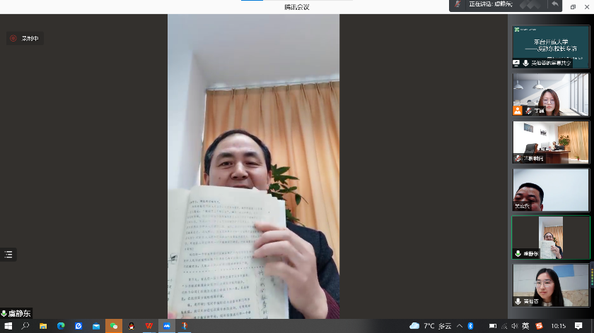 (图为虞校长向团队成员分享其文章)