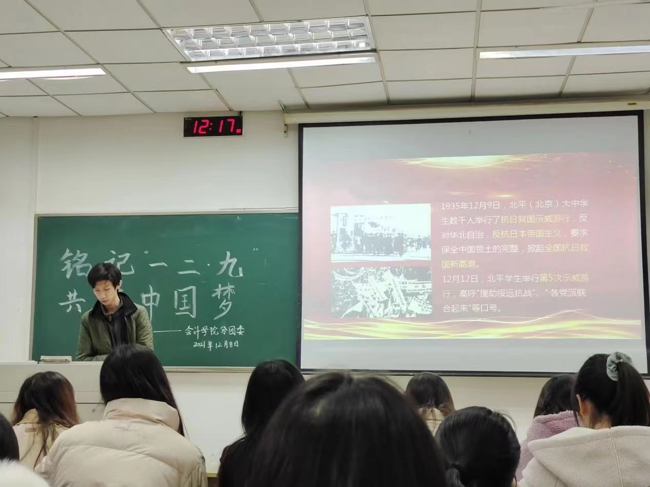 伟德国际1949分团委组织学生干部座谈会,学习“一二·九”运动精神与学生干部“谈理想,话成长”。同时,组织学生观看“一二·九”运动纪录片,了解“一二·九”运动的背景,学习“一二·九”运动的历史意义。会计2103班的朱奕霖同学表示,“一二·九”运动精神是民族精神、爱国主义精神的充分体现。今天的青年与八十六年前的青年血肉相连,精神赓续,作为新时代青年,我们更应该思考如何接过先辈的接力棒,投身时代洪流,谱写轰轰烈烈、波澜壮阔的时代新篇。