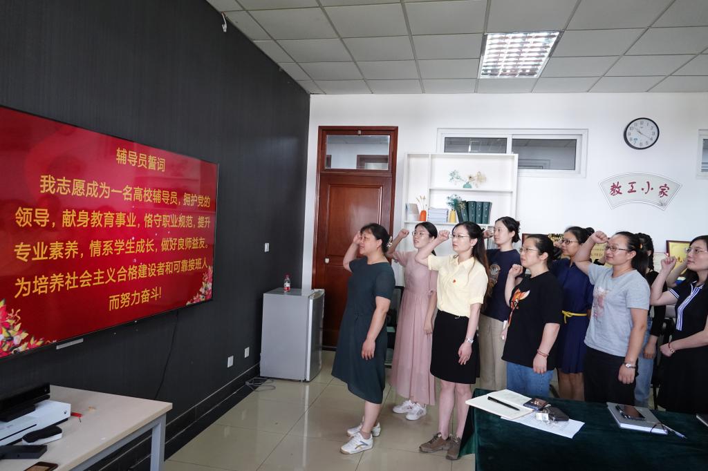 会议在庄严肃穆的氛围中开始,仲小晶老师带领全体辅导员重温入党誓词并宣读高校辅导员誓词。