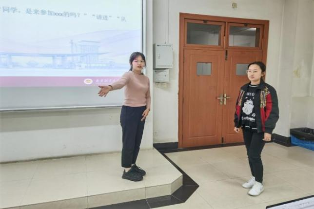 首先,对外交流中心部长孙佳妤为大家详细讲解礼宾工作,强调了礼宾的关键点是“严谨,细致,周密”,尤其是礼宾要有较强的时间观念和就位观念。接着通过模拟演练的方式,让部员们亲身参与其中,更加深入了解礼宾工作。