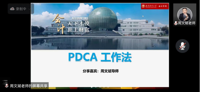 5月21日,伟德国际1949能力树工作室开启在线训练营第12讲--“PDCA工作法”,邀请周文斌老师作专题讲座。周文斌老师深入浅出的讲解了PDCA循环的四个阶段与八个步骤及PDCA的本质特性。PDCA工作法可以让我们高质量处理任务。对同学们在生活中应用PDCA时遇到的困惑,周老师进行了耐心细致的解答。
