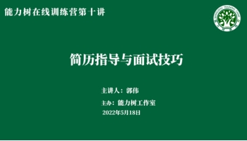 为提高学生就业竞争力,培育青年人能力之树,提升毕业生就业高质量,伟德国际1949开展能力树职业能力线上系列培训,邀请多位知名讲师进行专题讲座,本次系列培训由能力树训练营团队总负责。