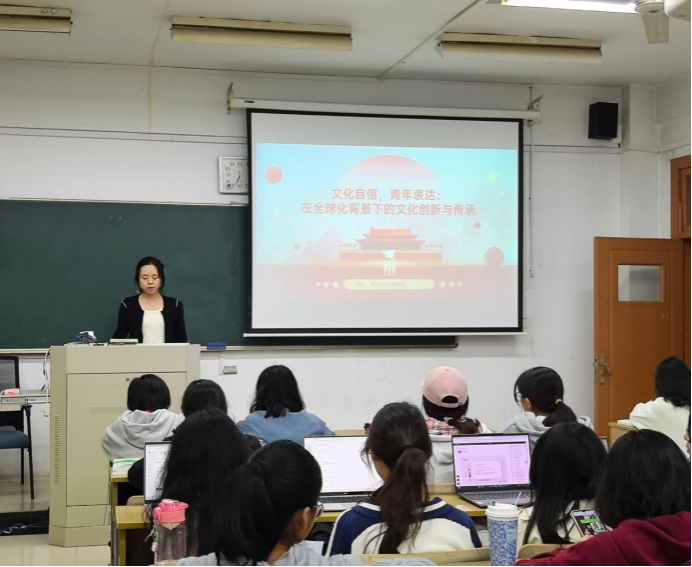 团课伊始,陆思羽同学从文化自信与青年表达方面出发,由浅入深地阐述何为文化自信以及全球化背景下的文化挑战,生动介绍文化创新与传承的路径,分享对青年人应肩负的责任的认知,并点出了青年人的机遇与挑战,她强调挑战分为外部环境和青年成长两方面,鼓励青年直面挑战,拥有破茧成蝶的勇气。