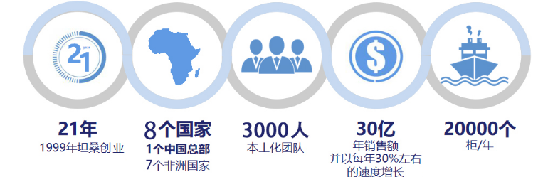 历经21年的发展,集团已经在坦桑尼亚、南非、莫桑比克、肯尼亚、尼日利亚、加纳、科特迪瓦等多个非洲国家设立了7家国家分公司、8家工厂等;2019年,博达公司销售额达30亿人民币,海外员工3000多人,常驻海外中方管理干部近300人,年度复合增长率保持在30%以上,发展潜力巨大。