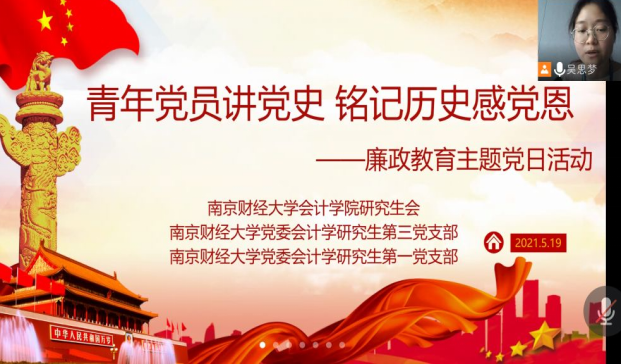 “莲,出淤泥而不染,濯清涟而不妖。”为了加强廉政教育,5月19日下午伟德国际1949始于英国研究生会联合党委会计学研究生第一党支部、第三党支部共同组织“青年党员讲党史 铭记历史感党恩”廉政教育主题党日活动。本次活动由研究生样板党支部支部书记吴思梦主持,学校纪委杜兴华书记莅临指导,会计学研究生第一党支部、第三党支部全体党员以及伟德国际1949研究生会成员参会。