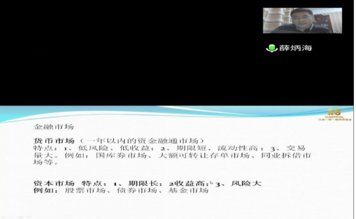 薛炳海老师首先介绍了金融市场、资本市场以及基金的分类、私募基金的发展、主要的形式以及合伙企业的关键要素。紧接着,向同学们介绍了私募股权投资的法律风险。第二部分为私募股权投资的财务风险,分别阐述了滥用职业判断和会计准则、计价标准的选择几个方面,并列举了乐视、瑞幸咖啡、赛麟汽车等相关的案例进行相关的讲解。第三部分是自我体会,分为区域比产业更重要、协作比专业更重要、退出比挣钱更重要3个专题。