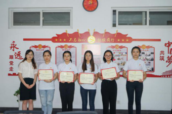 刘颖老师为获得二等奖的种林、杨露、鹿晓洁、王惠惠和窦淑娅等5名党员颁奖。