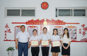 卜金涛书记为获得一等奖的田二霞、吴思梦和宋安悦等3名党员颁奖。