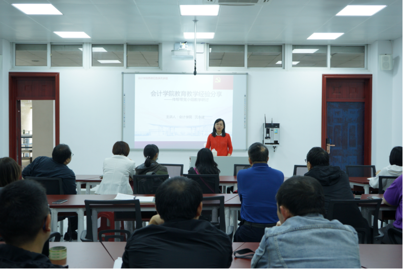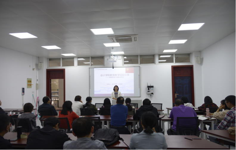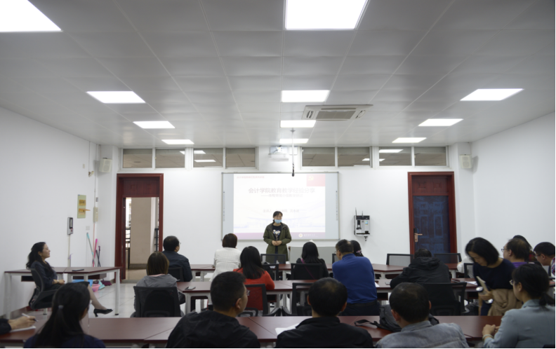 两位优秀教师代表分别讲述了自己的授课经验。会计系副主任韩小芳副教授曾获得校级讲课比赛一等奖,省级教学竞赛二等奖的优秀成绩,她以教学难度颇高的《高级财务会计》为例,从ppt制作,激励学生自主回答问题,组织学生运用课程展示讲解难题等方面分享了她的授课心得。另一位分享教师是张帆副教授,她曾获省级微课比赛二等奖,教学经验丰富。其从关注学生课堂反馈和利用社会化模式组织学生互动两个方面分享了授课经验。她认为,作为任课教师应当时刻关注学生的课堂情绪反馈,在学生分神的时候要及时作出反应,对授课进度进行及时调整。利用社会化组织模式调动学生自主学习积极性,通过学生互评、教师点评的方式带动学习氛围塑造。