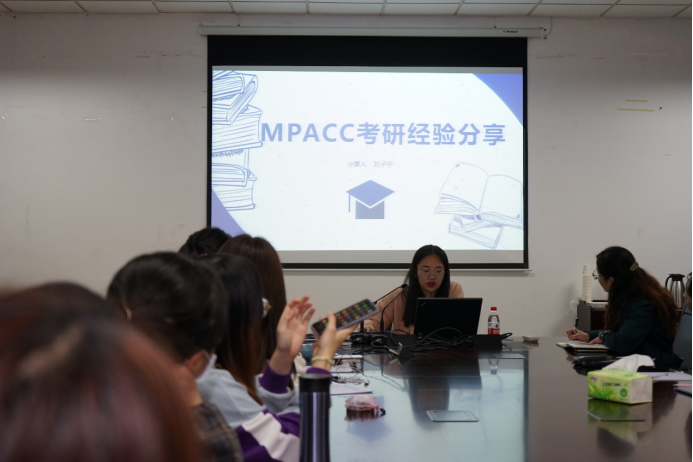 学院在读研究生分享考研经验,会计学硕刘露红向同学们分享了考研院校选择、各科复习建议、学习方法、时间安排和心态调整,她强调考研复习要找到适合自己的方法并坚持下去。会计专硕刘子宁介绍了一些考研课程和资料,她表示在复习过程中最好全程跟随一位老师学习,认清自己的长短板,平时练习时要将题目做透。资产评估专硕杨倩倩分享了考研院校选择和初试复习经验,提醒同学们要保持良好心态,多写多练多动笔,珍惜时间,学会取舍。