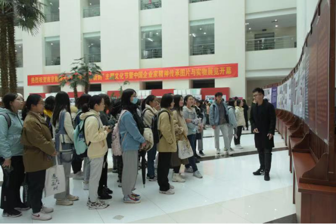 11月23日,外国语学院与马克思主义学院组织2020级新生及研究生于图书馆参观 “红色创业者故事精神传承图片与实物展览”,深刻体验“红色创业者故事精神”实境课堂。外国语学院党委书记李骏、伟德国际1949党委书记卜金涛、党委副书记刘颖陪同观看。红色创业者故事项目团队成员江雪寒、柳雨昂、潘嘉璐、白洋进行详细介绍,讲述了中国企业家们的创业史、奋斗史,从实业救国的民营企业到当下高速发展的创新型企业,一个个动人故事的背后无不彰显艰苦奋斗、敢闯敢干、聚焦实业、做精主业的中国企业家精神。