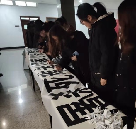 12月11日伟德国际1949学生会成员用黑白色折纸,手折上百只千纸鹤表达对和平的珍爱,每只千纸鹤都承载着剪不断的家国情怀。12月12日晚身着深色服装的会院学子庄重举行了点灯默哀仪式,一盏盏烛光寄托着哀思。最后,每位同学们在活动横幅上依次签名,活动全程气氛庄严肃穆。