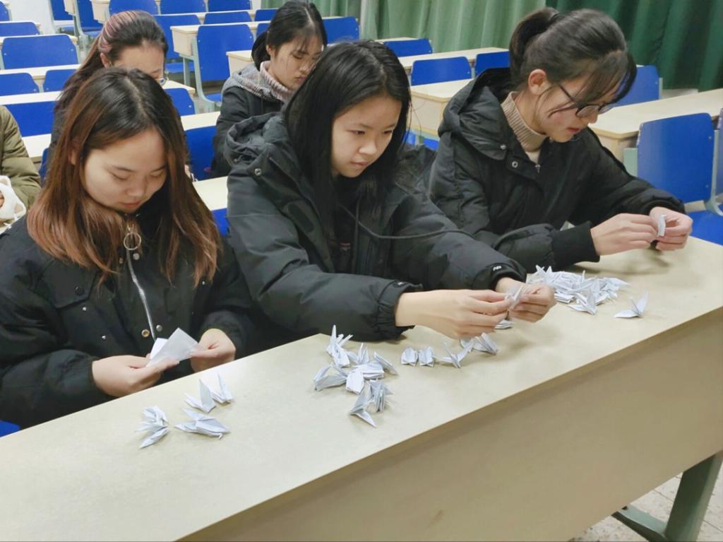 学生会成员手折千纸鹤
