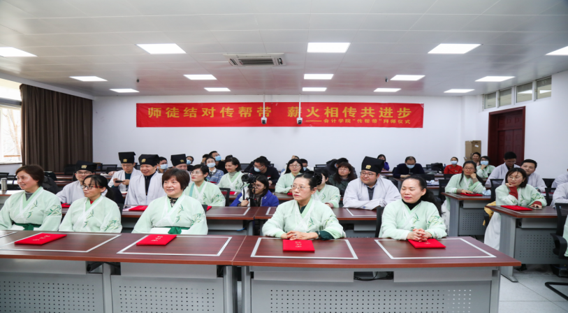 我院第一期“传帮带”拜师仪式共有12名青年教师和12名资深教师(包括校教学名师、校督导组专家、院督导组专家等)参加。老师们根据自身专业和发展目标,自愿结为师徒。行礼、敬茶、签订协议,在庄严的气氛中举行拜师仪式,在校领导、院领导和老师代表的见证下,完成拜师礼,正式结为师徒。