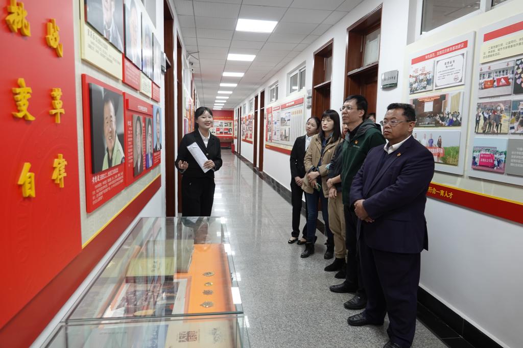 交流会前,张先平党委副书记一行应邀到伟德国际1949党史教育实境课堂——“百年红起”文化长廊进行现场学习,起业家博物馆项目学生团队讲解。“我在新华日报上看过你们的相关报道,博物馆很有意义。”张先平副书记在参观的过程中和学生交流。