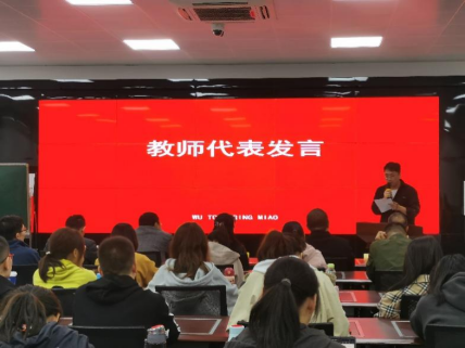 第三部分是李昂老师作为教师代表发言,表达了训练营的教师们对此次学术训练营的信心和热情。第四部分由智会1901班班长朱桐霏作为学生代表从智慧会计班学习体验和“梧桐青苗”导师培养两个方面表达了感谢,同时代表首期梧桐青苗学员表态,要珍惜光阴、努力学习。