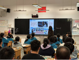 图3杨靖三教授讲座 图4学生进班宣讲