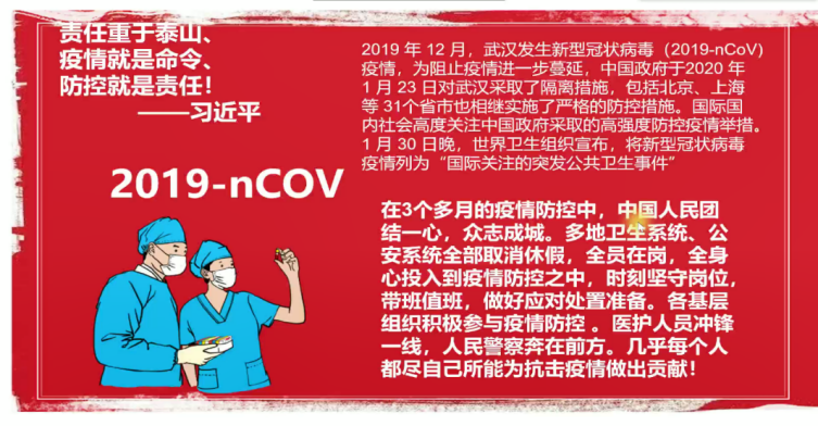 新型冠状病毒引发的肺炎疫情发生之后万多名医务工作者驰援武汉,无数公职人员和志愿者们奔赴抗疫一线,这些可爱可敬的人身上所体现出来的正是新时代雷锋精神3月5日是全国“学雷锋纪念日”,伟德国际1949分团委特开展战“疫”云演讲系列活动,引导青年学生学习抗疫榜样,树立坚决打赢疫情防控阻击战的信念。