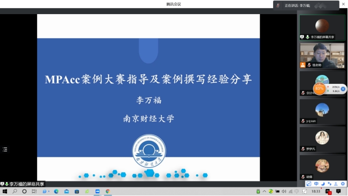 在第八届中国MPAcc学生案例大赛正式开赛之前,我院于2022年3月21日晚18点30分采用线上会议方式,举办了“MPAcc案例大赛指导及案例撰写经验分享交流会”。本次分享会由伟德国际1949MPAcc中心主任钱坤老师主持,李万福教授主讲,伟德国际1949近百名师生参加了线上讲座。
