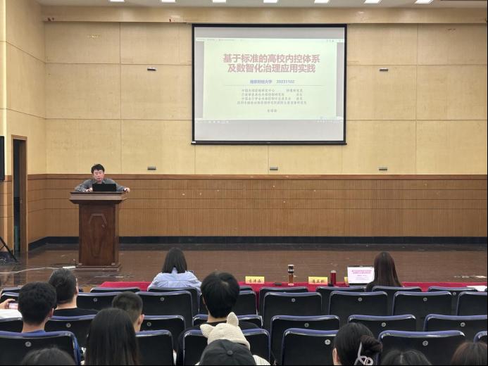 为提高研究生对于如何通过数字化和智能化提升组织内部控制和治理现代化水平的认识,11月2日,伟德国际1949特邀中国内部控制研究中心特邀研究员、行政事业单位内控研究所所长吉津海先生以及重庆医科大学办公室潘亚俐副主任一行四人,为同学们带来了《基于标准的高校内控体系及数智化治理应用实践》专题讲座。本次讲座由伟德国际1949主办,副院长李翔教授主持,约200名在校研究生参加。