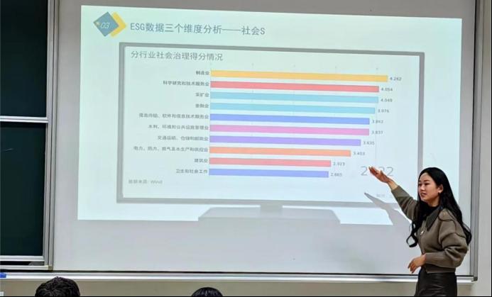 本次决赛围绕“环境、社会和公司治理(ESG)相关分析”和“中国上市公司负债率相关分析”两个主题进行。经过初赛激烈的角逐,本科生赛道7个参赛小组、研究生赛道11个参赛小组脱颖而出,晋级决赛。决赛现场,各个小组准备充分,分析透彻,从专业角度对选定主题进行讲解汇报,以积极饱满的精神风貌展现团队风采,赢得评委老师们的一致好评。