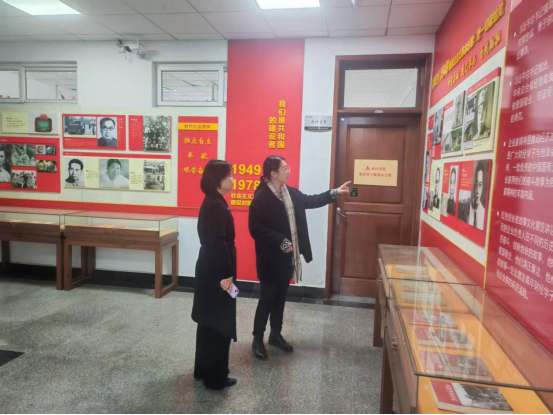 最后,黄小妹部长一行参观了伟德国际1949“红色创业者故事”文化长廊。在布丹丹副书记的讲解中,通过一幅幅图文展板、一段段生动事迹,深入了解了红色创业者们坚守初心、勇于担当的奋斗历程。黄部长对文化长廊的育人理念与建设成效表示赞赏,认为其为理想信念教育提供了鲜活载体,与“丹心百炼”工作室的育人定位高度契合。