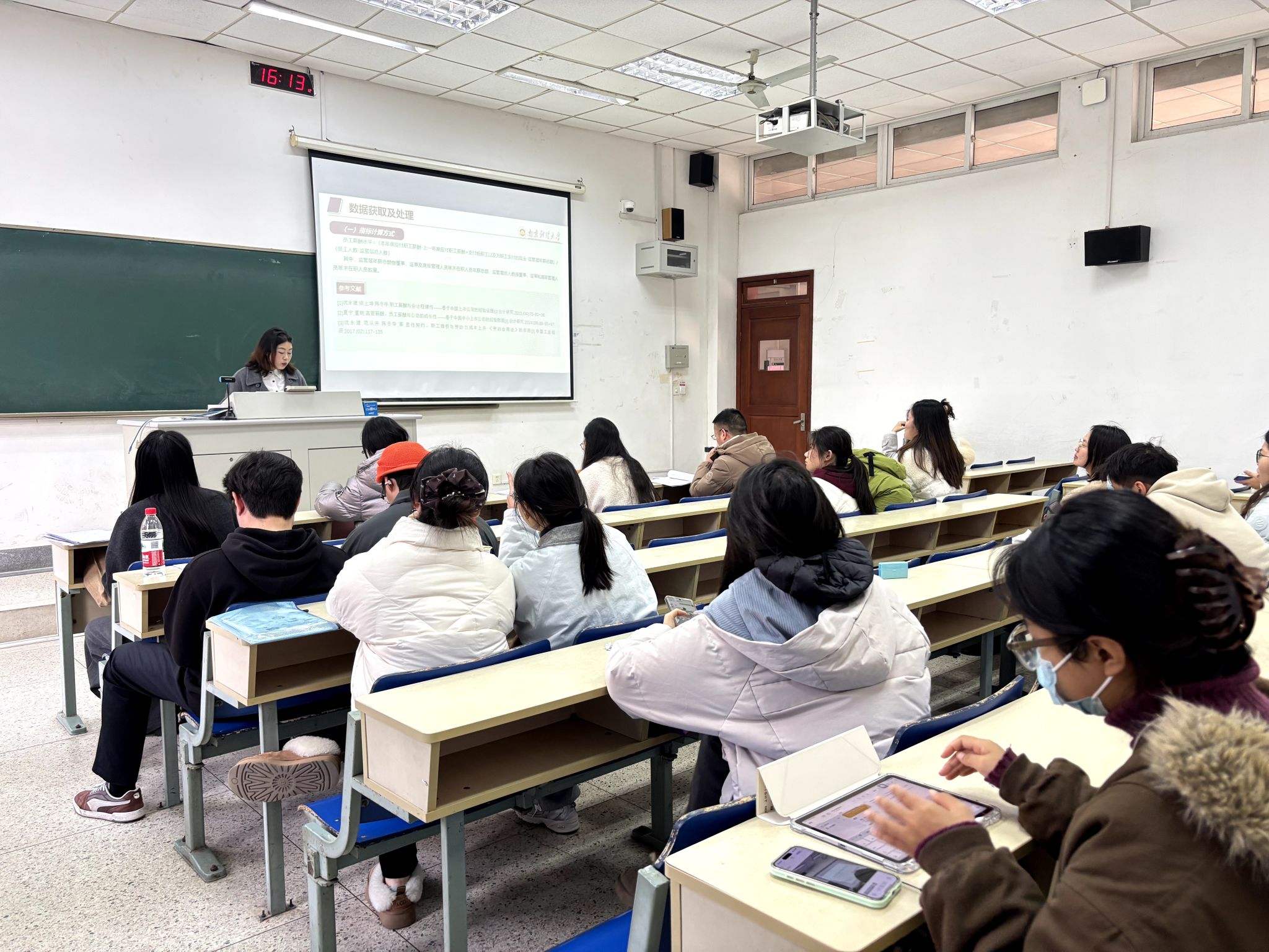 本次比赛采用现场答辩形式,六支队伍依次进行成果展示与问答。各参赛队伍依托扎实的专业知识,运用先进的数据分析工具,将复杂的财经数据转化为清晰直观、逻辑严密的可视化图表,生动揭示了数据背后的经济规律与管理启示,其创新思维与实践能力获得了评委的一致好评。参赛选题紧密契合经济社会发展前沿,覆盖宏观经济运行、企业财务决策、民生保障体系等多个重要领域:既有对劳动收入分配、产业转型期薪酬结构、跨境电商行业发展趋势的宏观研判,也有对企业内部资本配置效率的微观剖析,同时还关注到人口老龄化与养老金可持续性等社会热点,充分体现了数据科学方法与会计学、财务管理等学科的深度融合与应用价值。