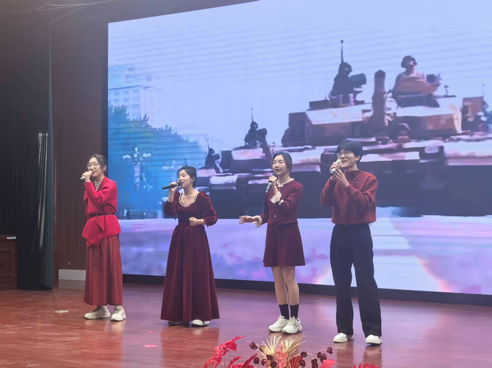 此次活动是我院深化军民共建、拓展实践育人平台的重要载体,将美育熏陶、志愿服务与军民共建有机结合。团拜会现场暖意融融,充满军民鱼水深情与青春气息。学院“丹心百炼”合唱团作为学院美育成果的鲜活体现,深情献唱了《夜空中最亮的星》《祖国,慈祥的母亲》《一杯美酒》三首作品,用歌声表达了对崇高理想的追寻、对祖国的挚爱以及对美好生活的礼赞,展现了会院学子良好的艺术素养与深厚家国情怀,赢得了在场老同志与观众们的阵阵掌声。各共建单位也奉献了舞蹈、戏曲、器乐等丰富多彩的节目,共同营造出欢乐祥和、尊崇关爱的浓厚节日氛围。