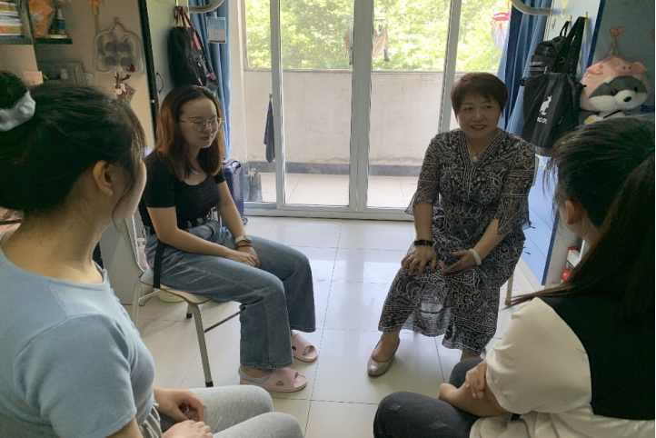 随后,为了深入了解研究生学习生活情况,韩力争部长走入学生宿舍看望学生。走访宿舍的过程中,韩力争部长不仅询问了学生们日常学习生活情况,还与学生就学习心理等各方面进行了面对面的亲切交谈,并了解了她们的就业意向,为她们论文及实习方面提出了建议。此外,她也对同学们提出殷切以及美好的祝愿,希望同学们加强自我管理,在保持阳光开朗、乐于表达的良好心态的同时能够收获美好未来。