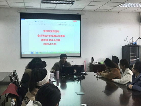 12月23日下午,伟德国际1949本科生第三党支部于德济楼308会议室开展 “党员学习日”活动。活动由第三党支部书记徐永宁老师主持,17级、18级第三党支部党员同学参加。