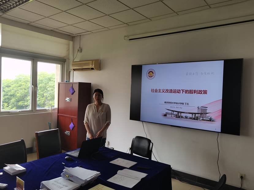 丁乙博士分享了《社会主义改造运动下的股利政策》,主要对社会改造时期中央政府如何和平改造资本主义工商业,通过“四马分肥”到按照股息来进行收益分配,重点回顾了新中国成立初期的资本主义改造的基本逻辑路线图,对于理解我国企业的股利政策具有重要的借鉴价值。