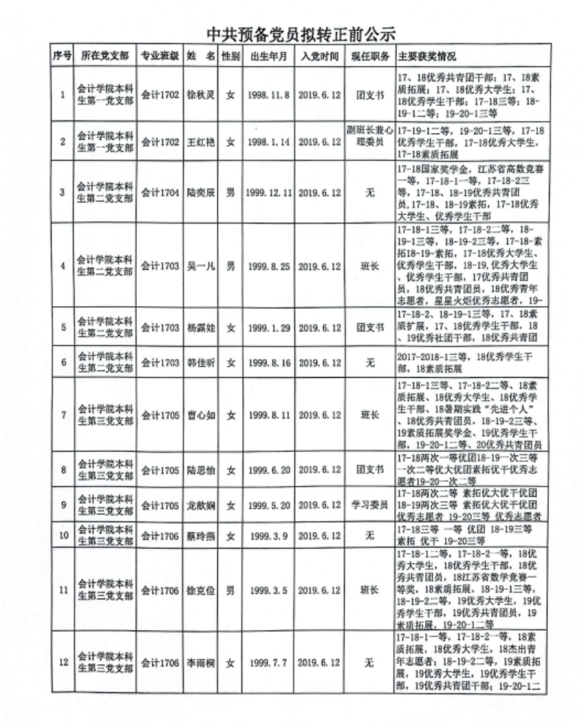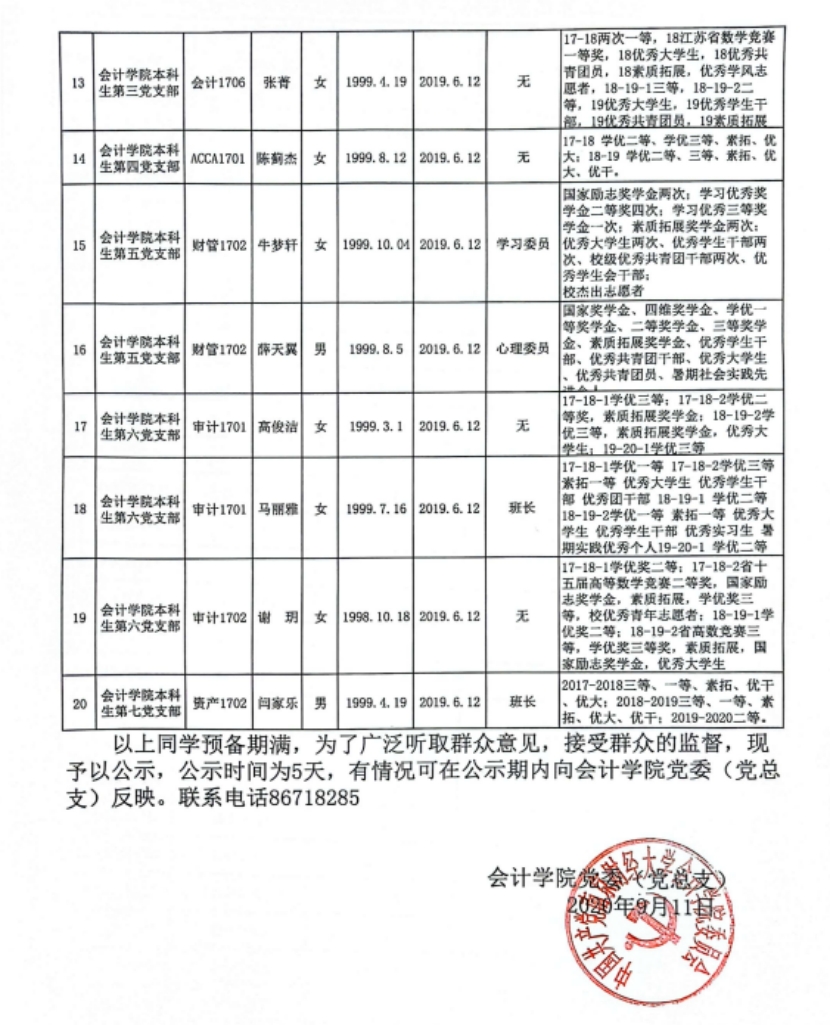 经预审,伟德国际1949党委认为以下20名中共预备党员已基本符合我校学生党员转正条件,拟近期转正,现予以公示:
