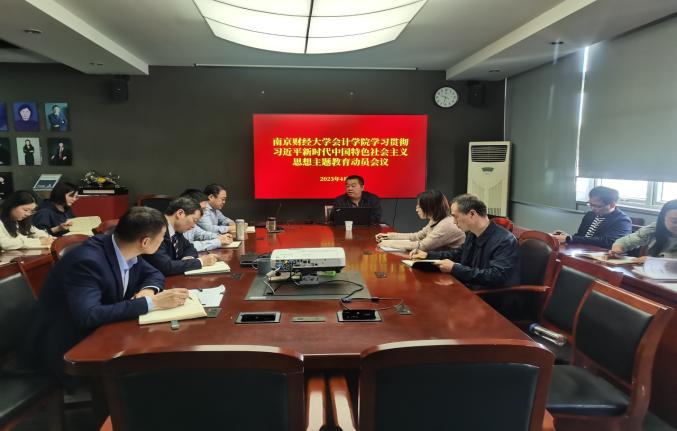 卜金涛书记代表学院作动员讲话和工作部署。卜金涛书记指出,开展学习贯彻习近平新时代中国特色社会主义思想主题教育,是当前一项重大政治任务,也是今年学院工作的重中之重。他就切实开展好学校主题教育提出三个方面要求:一是各党支部要切实增强开展主题教育的政治自觉,推动广大师生党员干部深刻理解开展主题教育的重大意义、总要求,准确把握主题教育的根本任务、具体目标和重点措施,坚决把思想和行动统一到党中央精神上来。二是各党支部要扎实有序推动主题教育各项工作,牢牢把握“学思想、强党性、重实践、建新功”总要求,统筹推进理论学习、调查研究、推动发展、检视整改、建章立制等工作,努力做到以学铸魂、以学增智、以学正风、以学促干。三是各党支部要真抓实干确保主题教育取得实效。学院领导要亲自抓、带头抓,以身作则、以上率下,师生党员干部要坚持做到边学习、边对照、边检视、边整改。把开展主题教育和推动学学院高质量发展结合起来,切实将主题教育成果转化为学院和学校治理的动能和效能,转化为推动学校加快建成全国一流的省属财经类高校的强大动力。