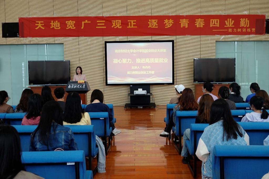 仲小晶老师以“大学生如何提高考研录取率”为主题介绍了学院近几年考研录取情况希望同学们能够合理定位、理性选择。布丹丹副书记围绕“凝心聚力推进高质量就业,强调了高校毕业生更加充分就业更高质量就业的必要性和现实意义,让大家对就业形势有了清晰的认知。