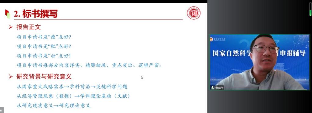 1月20日下午,应伟德国际1949邀请,常州大学商学院徐光伟教授面向伟德国际1949教师进行国家基金项目的辅导讲座。讲座以线上会议进行。